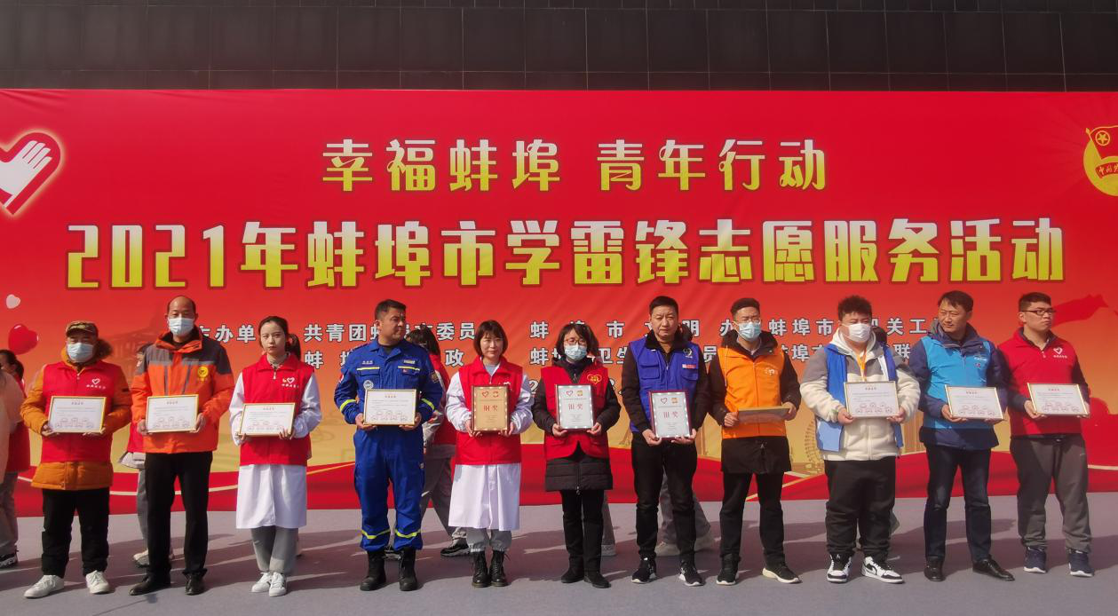 3月2日下午,由共青團(tuán)市委組織的“幸福蚌埠 青年行動(dòng)”學(xué)雷鋒志愿服務(wù)活動(dòng)在淮河文化廣場(chǎng)舉行。市委常委、宣傳部長(zhǎng)謝兵、市政協(xié)副主席鮑子雨、團(tuán)市委副書(shū)記韓見(jiàn)出席本次活動(dòng),并為獲得中國(guó)青年志愿服務(wù)項(xiàng)目大賽獲獎(jiǎng)志愿團(tuán)隊(duì)頒獎(jiǎng)。