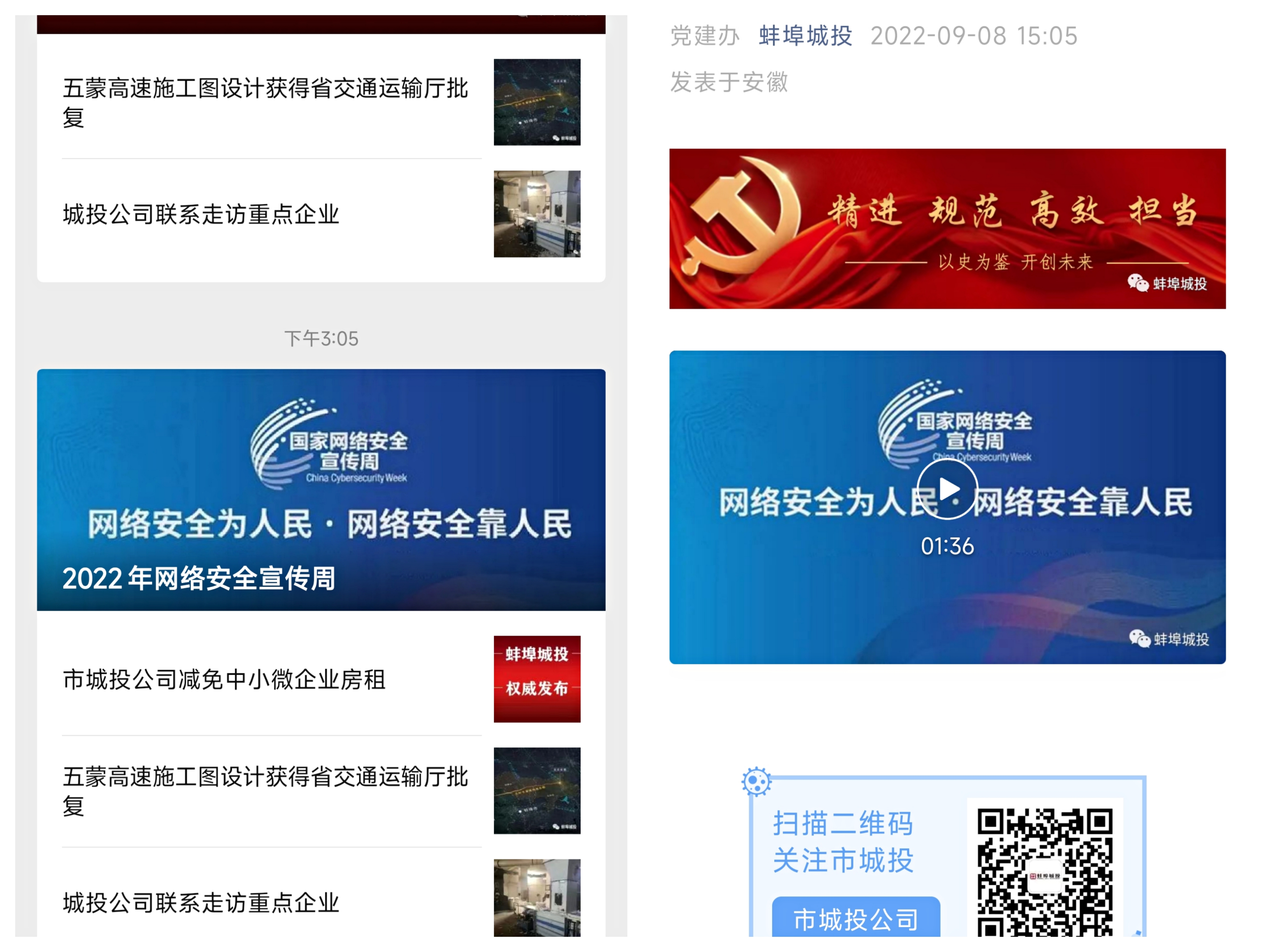 根據(jù)市委網(wǎng)信辦《2022年蚌埠市網(wǎng)絡(luò)安全宣傳活動實施方案》要求,市城投公司認真組織開展以“網(wǎng)絡(luò)安全為人民、網(wǎng)絡(luò)安全依靠人民”為主題的網(wǎng)絡(luò)安全宣傳周活動。