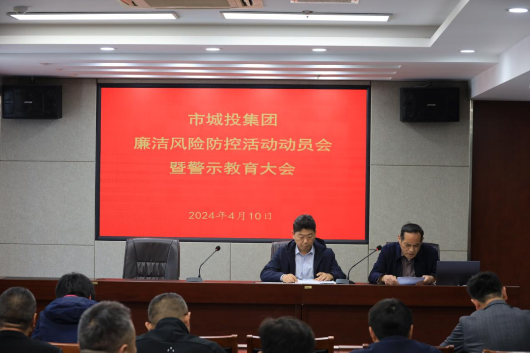 4月10日,市城投公司紀委組織召開廉潔風險防控活動動員會暨警示教育大會,公司黨委委員、紀委書記于良君同志出席會議并講話,公司各部室中層及子公司管理人員、重點崗位職工參加會議。
