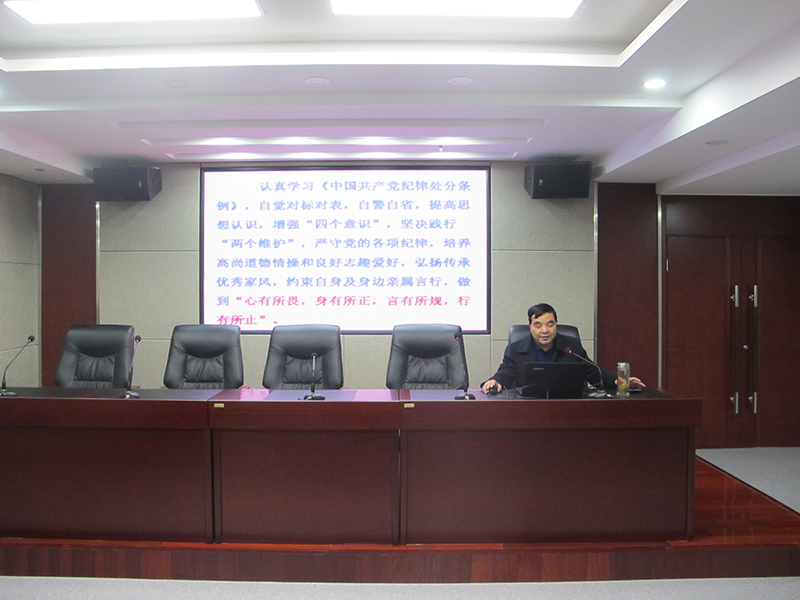 會上,王明臣教授講述了《中國共產(chǎn)黨紀律處分條例》修訂情況及意義,對最新出臺的《中國共產(chǎn)黨紀律處分條例》進行了詳細地闡述和分析,以“一、二、三、四、五、六、七、八”即“一個思想、兩個堅決維護、三個重點、四個意識、四個形態(tài)、五處紀法銜接、六個從嚴、七個有之、八種典型違紀行為”,言簡意賅地概述了《中國共產(chǎn)黨紀律處分條例》的特點,切實讓全體黨員對《中國共產(chǎn)黨紀律處分條例》有了更加深刻的認識和了解。同時,王明臣教授利用身邊反面典型警醒全體黨員要時刻以《中國共產(chǎn)黨紀律處分條例》為準繩,嚴守黨的紀律規(guī)矩,并向全體黨員提出了“謹言慎行、潔身自好”八個字的要求,進一步提升了全體黨員紀律意識。