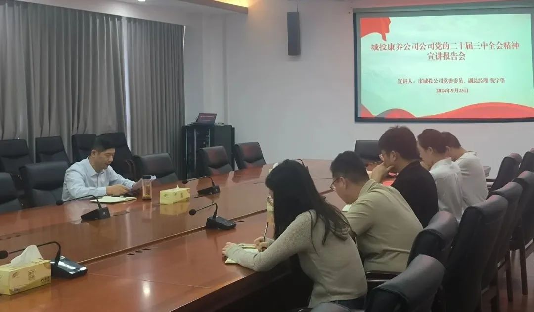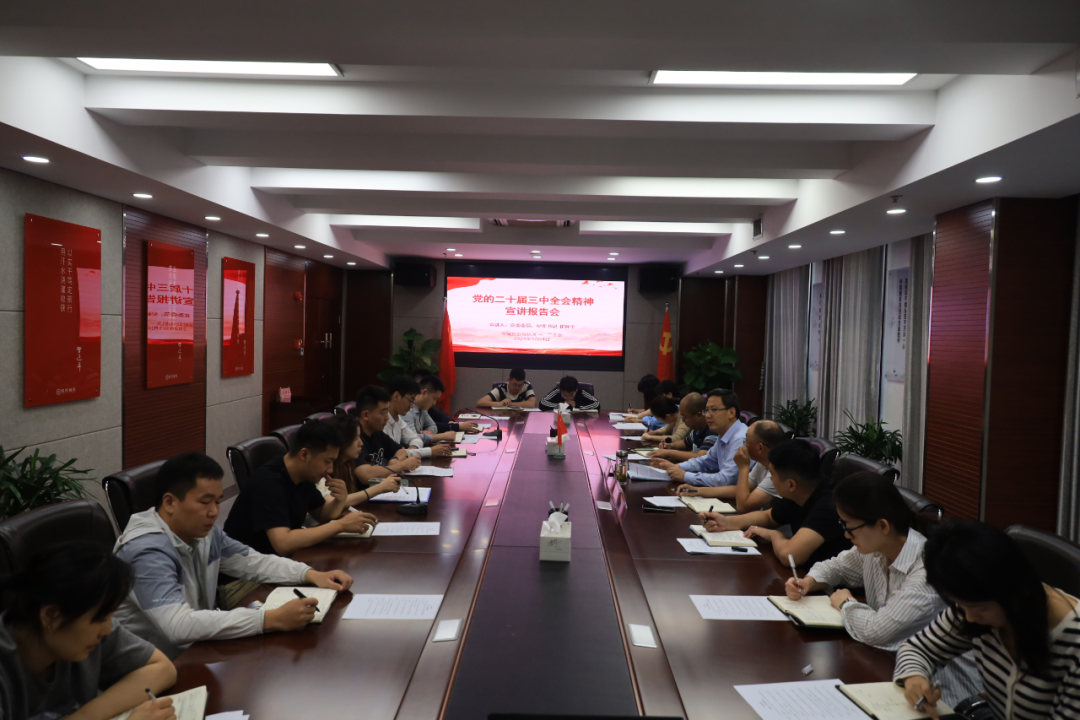 9月23日上午,市城投公司舉行黨的二十屆三中全會精神宣講報告會,黨委書記沈明仕主持會議并作宣講報告,領(lǐng)導班子其他成員及各黨支部書記、各部門負責同志參加會議。