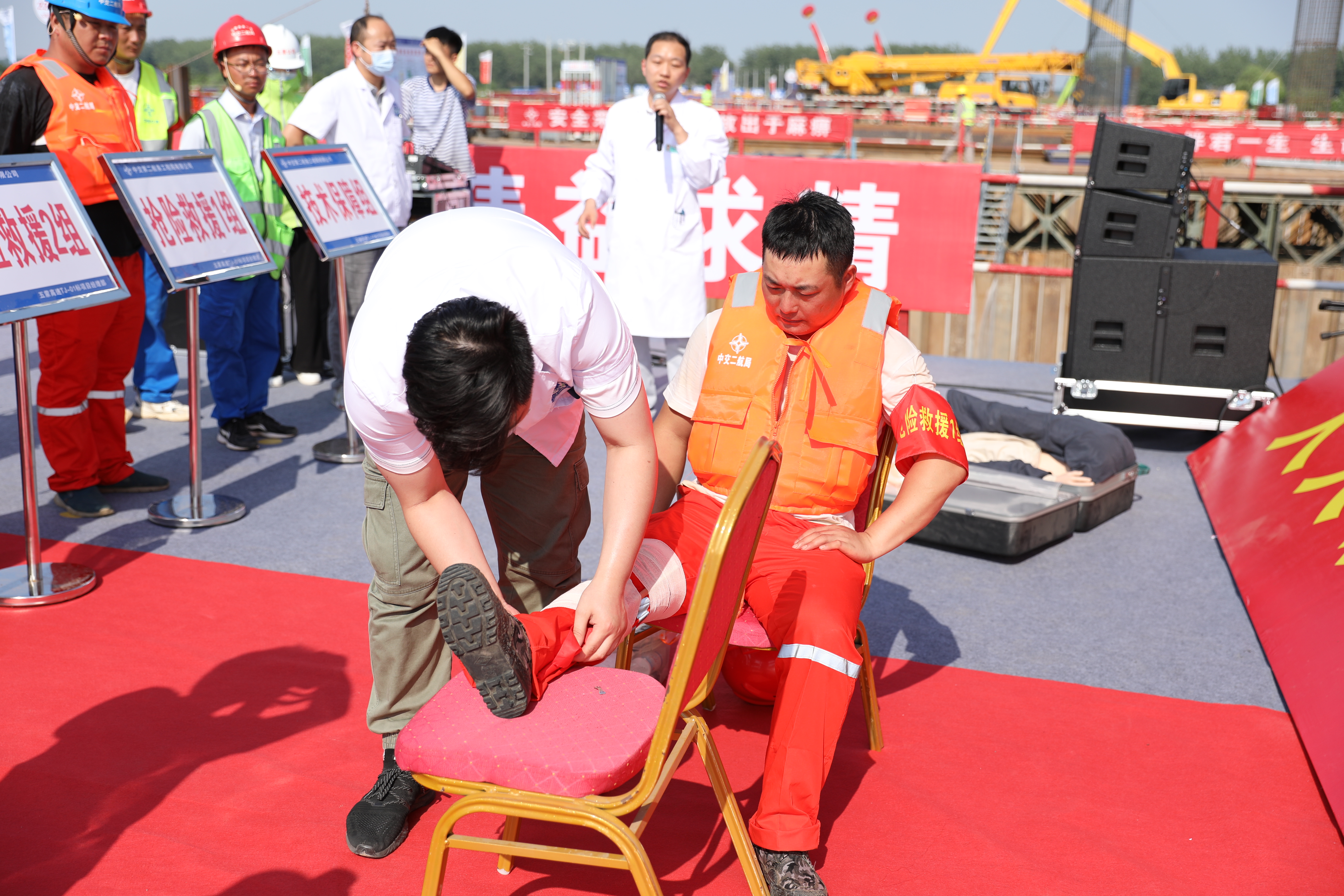 6月27日下午,五蒙高速公司聯(lián)合施工單位中交二航局,在蚌埠市五河縣五蒙高速TJ-01標沱湖特大橋鋼棧橋平臺隆重舉辦了“五蒙高速建設(shè)項目2023年防洪度汛暨水上救援綜合應(yīng)急演練”。市交通運輸局、市應(yīng)急管理局、市交通執(zhí)法支隊質(zhì)檢大隊相關(guān)領(lǐng)導(dǎo)及五蒙高速各參建單位派員現(xiàn)場觀摩了本次應(yīng)急演練。