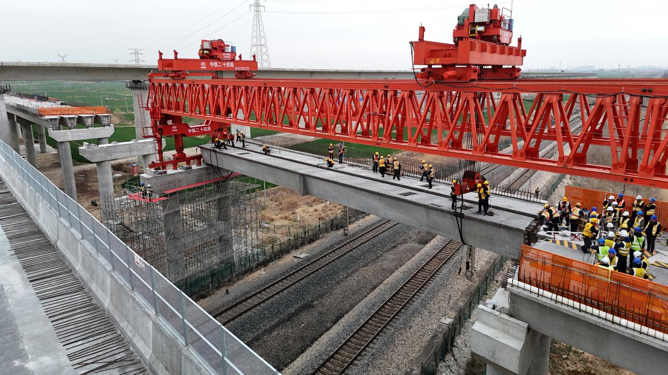 項(xiàng)目位于蚌埠市固鎮(zhèn)縣,全長(zhǎng)1.988千米,由中鐵二十四局負(fù)責(zé)項(xiàng)目實(shí)施。京滬鐵路每日通行約140對(duì)列車(chē),為確保鐵路運(yùn)營(yíng)不受干擾,單日封鎖施工時(shí)間有限,需要在100分鐘內(nèi)完成兩片高2米、長(zhǎng)40米、重170噸的箱梁架設(shè)任務(wù),施工難度高、安全風(fēng)險(xiǎn)大。