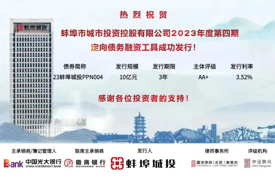 市城投公司成功發(fā)行10億元定向債務融資工具|創(chuàng)今年皖北地區(qū)AA+主體3年期同品種債券票面利率新低